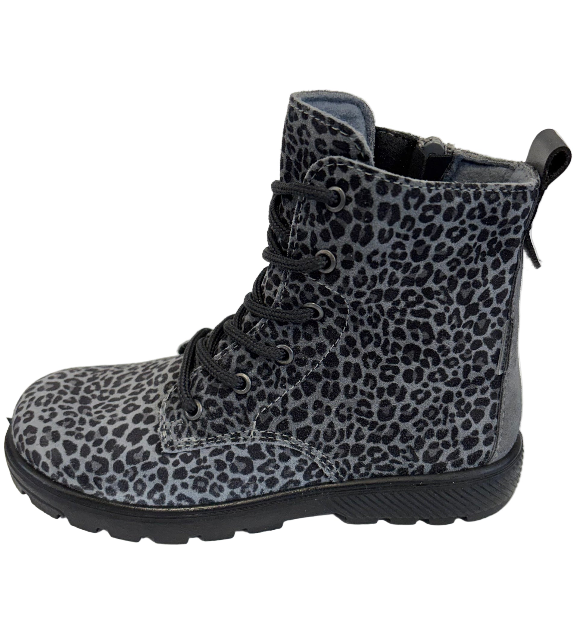 RICOSTA ANNI CARBON GREY /BLACK LEOPARD PRINT LACE WATERPROOF BOOT
