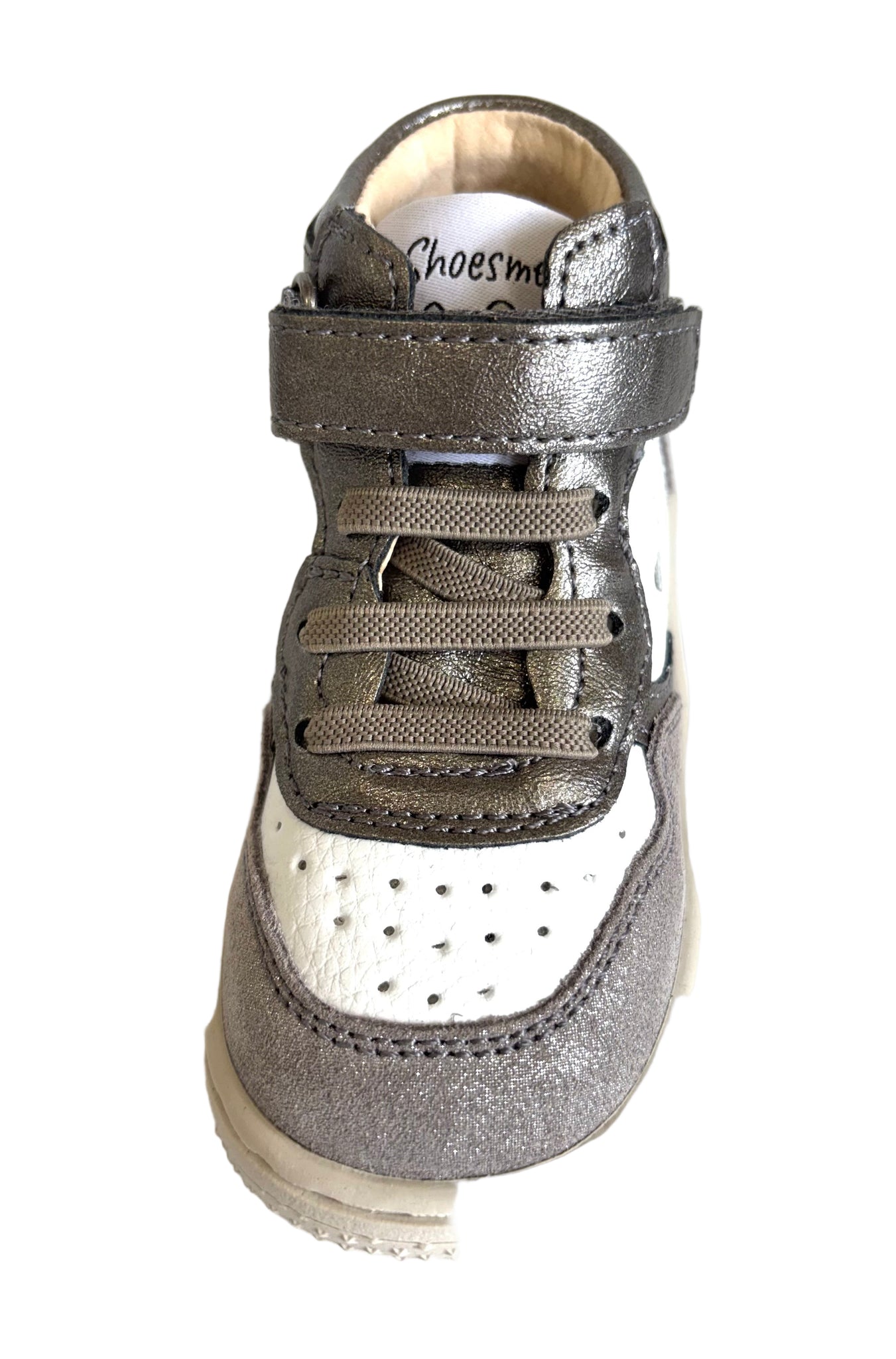 SHOESME BN25-W008-F SILVER SHIMMER ELASTICATED LACE/ VELCRO HI TOP TRAINER (Copy)